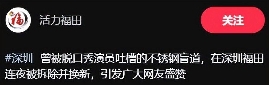 32. 没想到节目播出当晚,深圳福田区连夜拆余处问题盲道,全部更换为防滑材料。